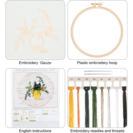Black Cat in Yellow Planter Embroidery Kit