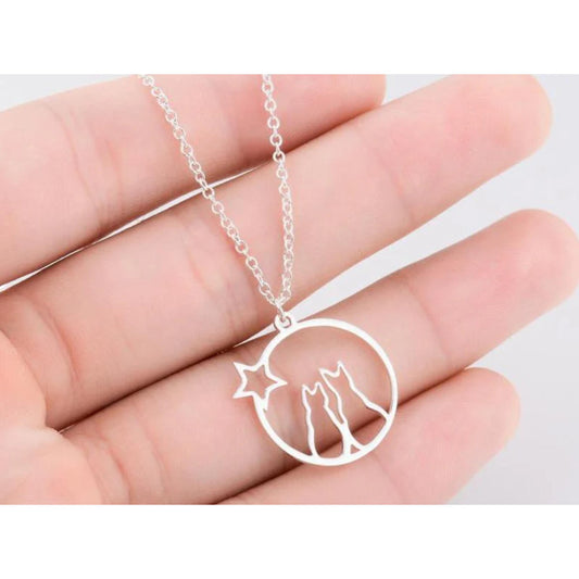 Stainless Steel Cat Star Pendant Necklace with Chain